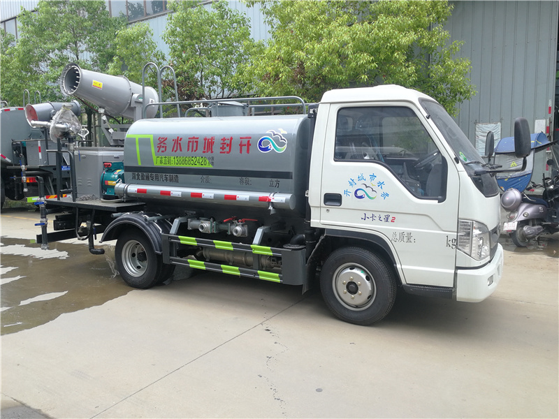 福田藍牌灑水車多少錢一輛_福田藍牌霧炮抑塵車,福田小卡二藍牌灑水車_國六藍牌霧炮車_藍牌三方灑水車_湖北盈通專用汽車有限公司,功能配置:罐體有效容積9噸,采用武鋼4mm 優質碳鋼一次卷壓無縫成型,部分配灑水泵,帶前沖、后灑、側噴、后工作平臺及灑水高壓炮。配消防接口、自流閥,2根與罐體等長輸水管,水位計,1個爬梯,兩側及后杠。灑水泵自吸高度為7米,出水量為60立方米每小時,灑水寬度大于14米,后工作平臺水炮可調成直沖狀、大雨、中雨、小雨、毛毛雨,直沖射程25米左右,霧狀射程15米左右。(可選配:錳鋼罐體、加粗管道、駕駛室一鍵操作、氣動控制、罐體防腐、高端灑水泵)