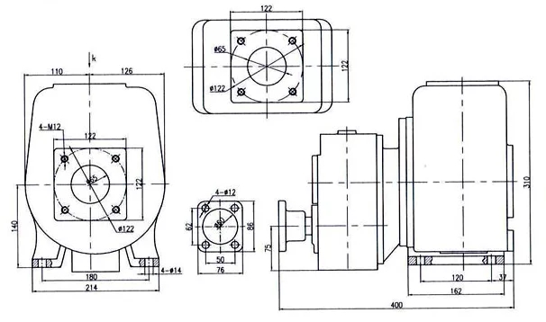 (5)擰下齒輪箱與泵體的連接螺母,用兩個M12螺栓擰人法蘭螺孔均勻地將泵體與齒輪箱體頂開并使之完全分離。(6)取下二級葉輪及拆下密封座(注意不要損壞機械密封)。(7)拆下透蓋取出主動軸組件,拆下悶蓋抽出齒輪軸組件。