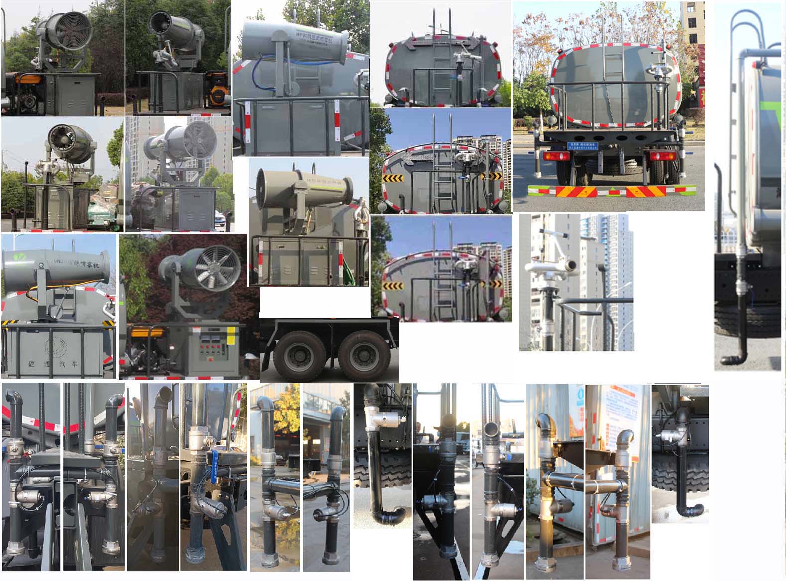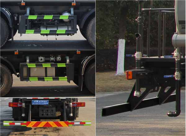 該車主要用于城鄉園林綠化噴灑;主要裝置為罐體及噴灑裝置:罐體總容量:20.1立方米;罐體有效容積:19.14立方米;罐體外形尺寸(×長軸×短軸)(mm):7300×2450×1650;側、后防護材料均為:Q235碳鋼,連接方式均為:螺栓連接,后部防護截面尺寸(mm):120×50,后部防護離地高度(mm):490;ABS的型號及生產廠家:3631010-C2000/東科克諾爾商用車制動系統(十堰)有限公司,J ABS/焦作博瑞克控制技術有限公司.隨底盤選裝駕駛室,選裝噴霧裝置樣式,選裝箭頭指示燈裝置,選裝自動球閥安裝位置,選裝高位花灑管道樣式,選裝水炮支架位置,選裝擋泥板樣式,僅采用軸距(mm):1850+3200+1350改裝.