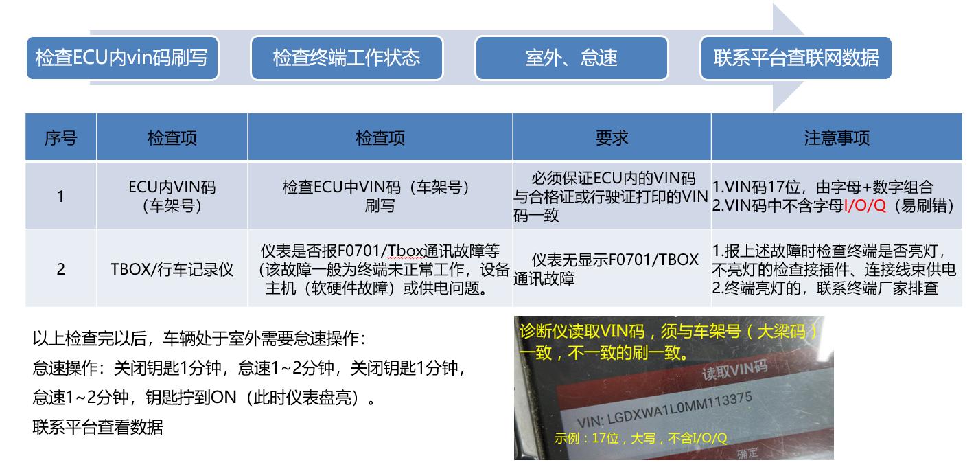 2) 車輛換證后必須到服務站刷新ECU內(nèi)的VIN碼(車架號),服務站處置后,聯(lián)系傳為佳話按新VIN碼重新激活。