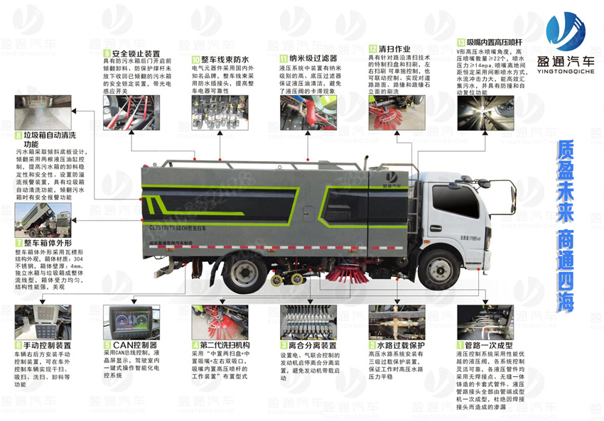 吸塵車是掃路車系列之一。是盈通汽車公司研發的具有自主知識產權的專利產品——“高速高強度氣流清洗除塵率”。全部采用氣流作業和參觀循環,不用刷子和噴水,徹底解決了粉塵污染嚴重的問題。是現代新型環保節能衛生產品。該產品集清掃、垃圾回收、運輸于一體,廣泛應用于城市環衛。