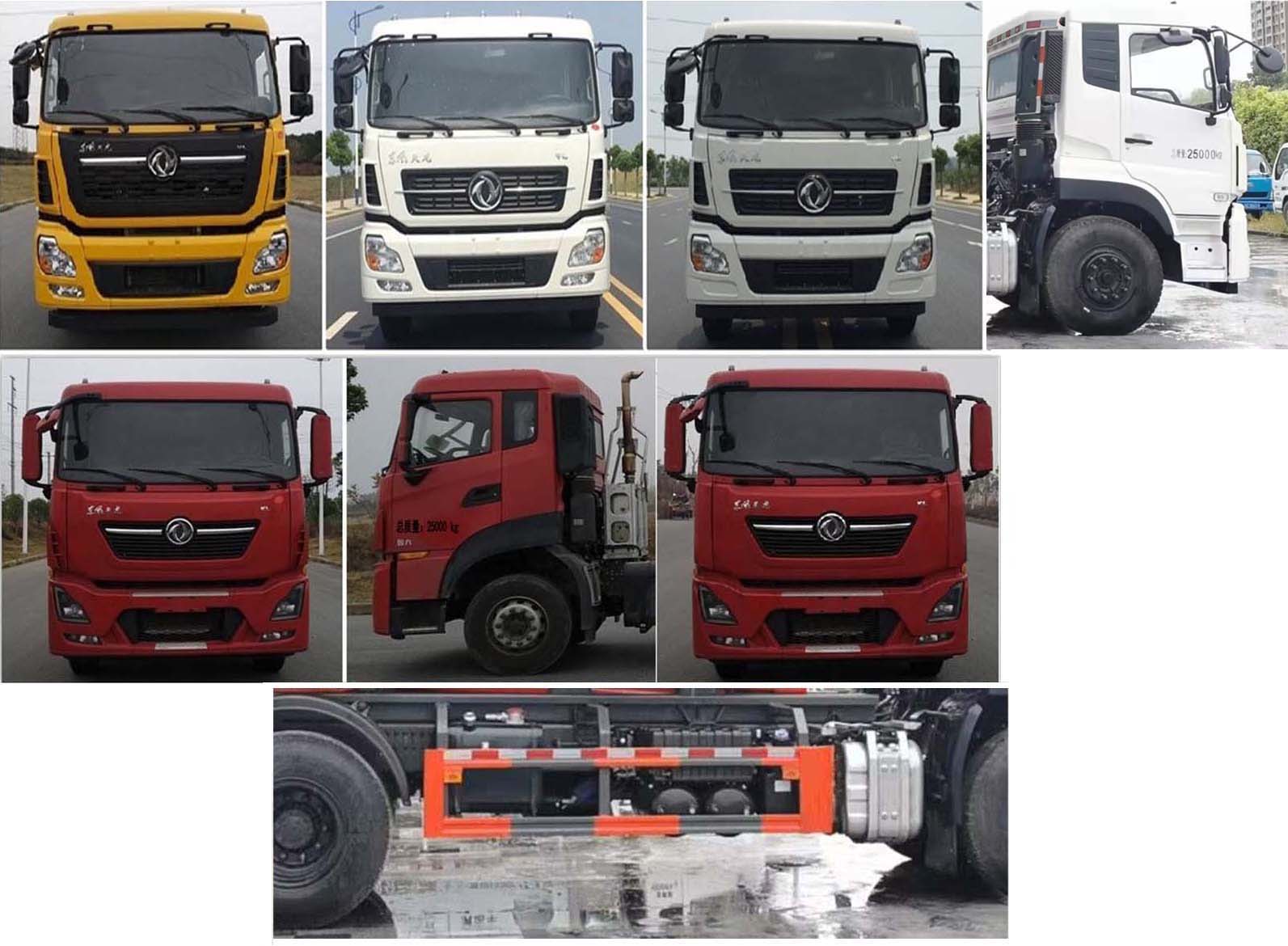 東風垃圾車,車廂可卸式垃圾車,天龍車廂可卸式垃圾車,掛桶式垃圾車,該車主要用于垃圾轉運,專用裝置為勾臂系統.整車長(mm)/軸距(mm)的對應關系分別為:9380/5350+1350,8380/4350+1350./后部防護材料為:Q235碳鋼,連接方式均為:螺栓連接,后部防護截面尺寸(mm):120×50,后部防護離地高度(mm):480.ABS型號/生產廠家:3631010-C2000/東科克諾爾商用車制動系統(十堰)有限公司,ABS 8/東科克諾爾商用車制動系統(十堰)有限公司,4460046450/威伯科汽車控制系統(中國)有限公司;選裝直接供電式ETC車載裝置;發動機型號/油耗值(L/100km):D6.7NS6B290/31.3,DDi75E350-60/31.7,DDi75E300-60/31.7,DDi75E340-60/31.7,D6.7NS6B320/31.3.該車安裝具有衛星定位功能的行車記錄儀.發動機D6.7NS6B290DDi75E350-60DDi75E300-60DDi75E340-60D6.7NS6B320的最大凈功率為208kW,252kW,215kW,245kW,226kW.隨底盤選裝駕駛室,隨底盤選裝后處理外形,隨底盤選裝限速裝置,限速為89km/h.