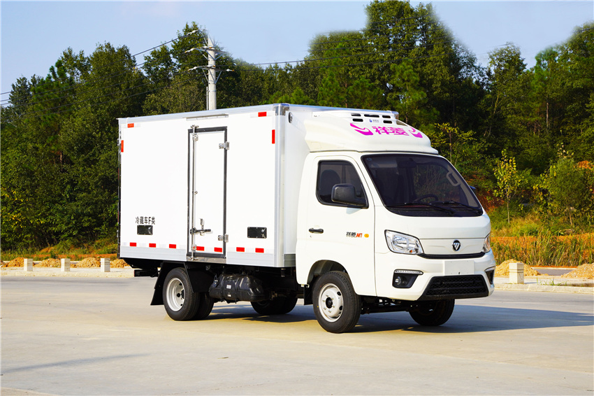 福田祥菱M1冷藏車采用國六汽油東安115馬力(DAM15KR發動機,5變速箱,2750軸距,高配,原廠空調,后雙胎,5檔變速箱,175R14后雙胎,122后橋,ABS,電動助力轉向