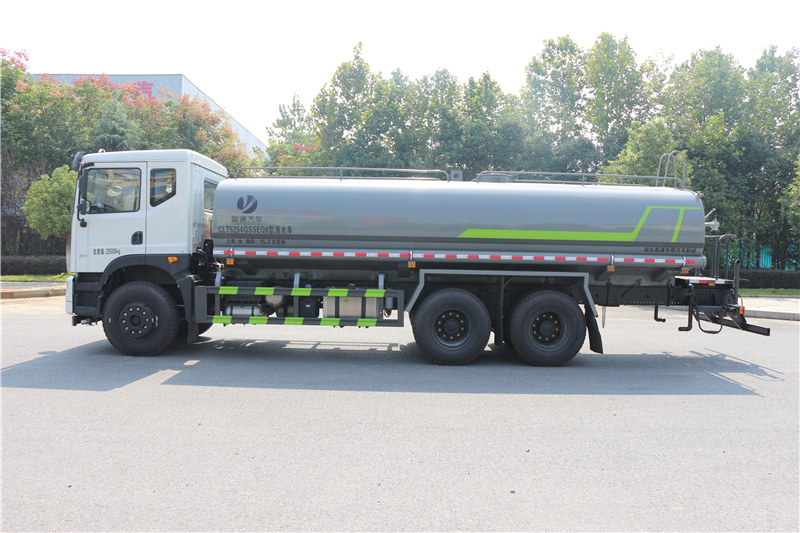 東風華神T5灑水車,華神后雙橋灑水車,華神19方灑水車,國六19方水罐車選裝噴霧裝置樣式.ABS型號:3631010-C2000,J ABS;ABS生產企業:東科克諾爾商用車制動系統(十堰)有限公司,焦作博瑞克控制技術有限公司;隨底盤選裝駕駛室,選裝電瓶,油箱位置;側、后防護材料均為:Q235碳鋼,連接方式均為:螺栓連接,后部防護截面尺寸(mm):120×50,后部防護離地高度(mm):480;罐體總容量:14.96立方米;罐體有效容積:14.25立方米;罐體外形尺寸(×長軸×短軸)(mm):6500×2400×1400;該車主要用于城鄉園林綠化噴灑;主要裝置為水罐及噴灑裝置;選裝擋泥板樣式.選裝后部樣式,選裝弧形噴灑裝置,選裝箭頭燈裝置,選裝高位花灑管道樣式,選裝水炮支架位置.選裝自動球閥安裝位置.選裝前電子炮裝置樣式,前伸500mm,整車長度為10800mm.選裝大工作平臺,選裝車輛前部鴨嘴裝置,選裝罐體頂部方形罐口及罐口位置,選裝尾部自流口裝置.