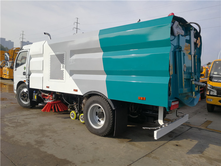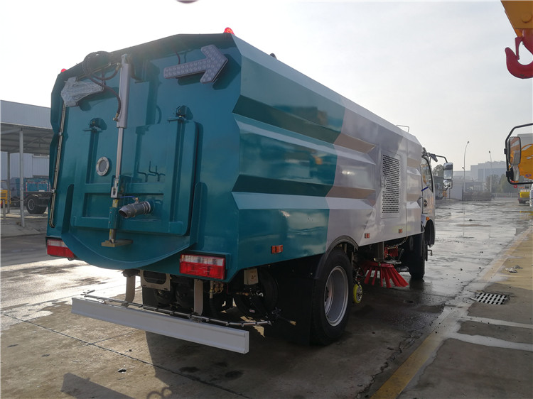 ● 左右側噴桿V形布置和吸嘴內置主噴桿無間隙高壓噴嘴噴水布置,有效的將清洗后的污水和垃圾全部歸攏趕至吸嘴處,并吸收于污水垃圾箱內,使路面不留塵土、積水,路面清洗、刷掃和污水回收效果佳。