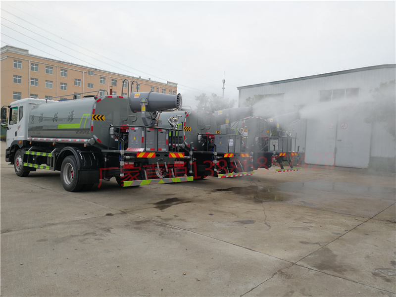 該車用途為抑塵降霾,主要裝置為罐體及噴霧裝置;隨底盤選裝駕駛室;罐體有效容積:12立方米;罐體外形尺寸(×長軸×短軸)(mm):4000×2300×1540,4200×2450×1700,4000×2450×1680;ABS型號:ABS系統生產廠家,型號 :焦作博瑞克控制技術有限公司,J ABS;襄陽東風隆誠機械有限責任公司,ABS/ASR-24V-4S/4M.側、后防護材料均為:Q235碳鋼,連接方式均為:螺栓連接,后部防護截面尺寸(mm):120×50,后部防護離地高度(mm):460.選裝附件位置,選裝噴霧裝置樣式,選裝油箱出口位置。
