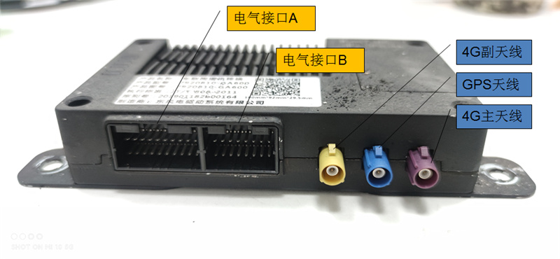 我們先來看看T-BOX的接口,大多數廠家的T-BOX接口有兩部分,一部分是與GPS天線和4G天線連接的“天線接口”,另一部分是與車輛電氣系統連接的“電氣信號接口”。
