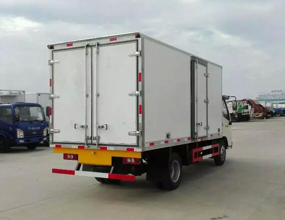 冷藏車廂體:采用國標A級聚氨酯保溫材料,厚度為8厘米,廂體內外采用玻璃鋼材質全包裹。不銹鋼鎖件。包角、包邊鋁合金型材。底盤采用高強度花紋鋁板定制。可選裝肉鉤導軌,和底部通風槽。