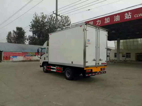 冷藏車廂體:采用國標A級聚氨酯保溫材料,厚度為8厘米,廂體內外采用玻璃鋼材質全包裹。不銹鋼鎖件。包角、包邊鋁合金型材。底盤采用高強度花紋鋁板定制。可選裝肉鉤導軌,和底部通風槽。