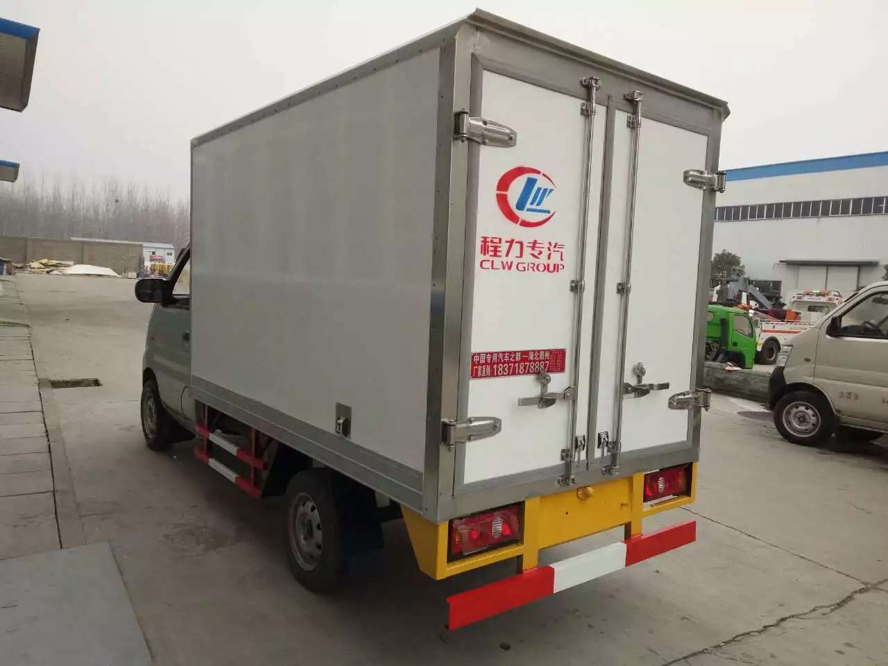 冷藏車廂體:采用國標A級聚氨酯保溫材料,厚度為8厘米,廂體內外采用玻璃鋼材質全包裹。不銹鋼鎖件。包角、包邊鋁合金型材。底盤采用高強度花紋鋁板定制。可選裝肉鉤導軌,和底部通風槽