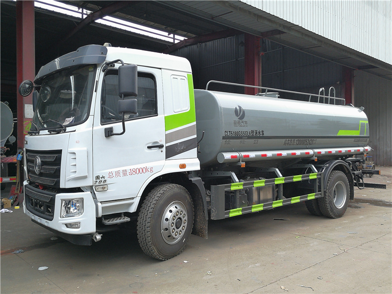 東風華神F5灑水車_華神玉柴200灑水車_華神15方灑水車_湖北盈通專用汽車有限公司,ABS型號:3631010-C2000,J ABS;ABS生產企業:東科克諾爾商用車制動系統(十堰)有限公司,焦作博瑞克控制技術有限公司;選裝描述:隨底盤選裝駕駛室,隨底盤選裝底盤布置;所用材料材質、連接方式以及后部防護裝置的主要尺寸參數(斷面尺寸和離地高度):側、后防護材料均為:Q235碳鋼,連接方式均為:螺栓連接,后部防護截面尺寸(mm):120×50,后部防護離地高度(mm):450;罐體有效容積(立方米)、罐體外形尺寸(mm):罐體有效容積:11.45立方米;罐體外形尺寸(×長軸×短軸)(mm):5200×2300×1410,4400×2350×1600;專用功能及裝置:該車主要用于城鄉園林綠化,路面噴灑,除塵和降溫;主要裝置為水罐及噴灑裝置;